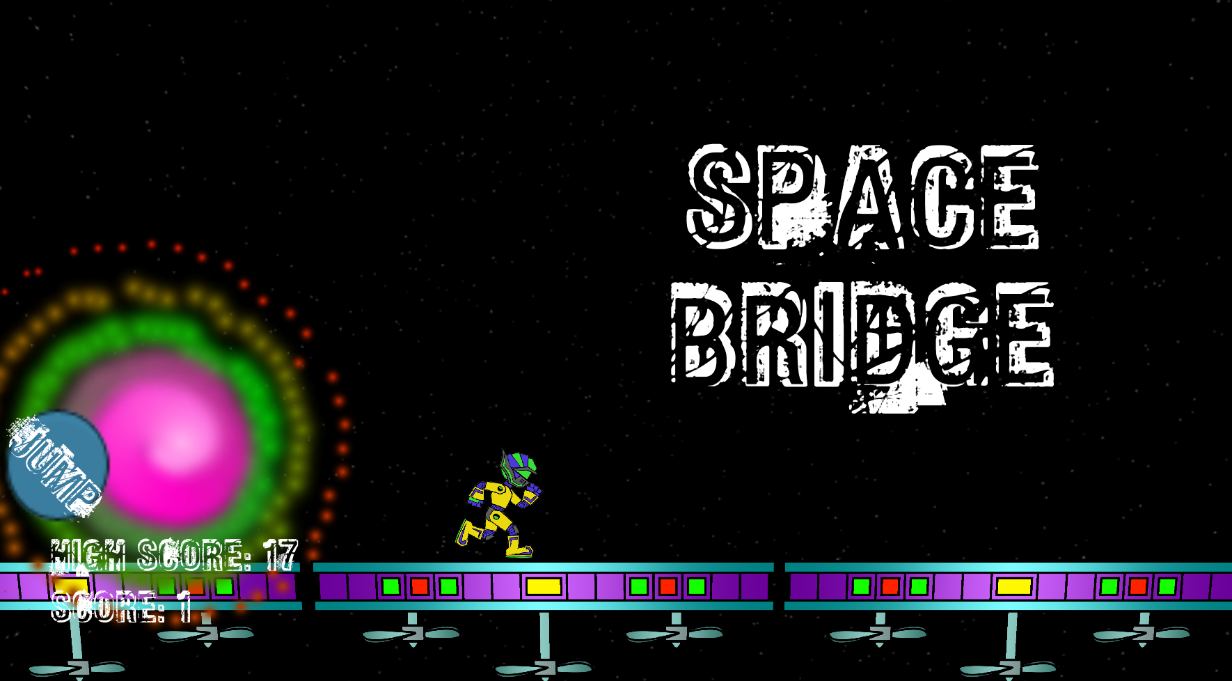 Space Bridge Home Page Space Bridge is a game I made for school. Where you run through space, jumping from platform to platform dodging black holes and asteroids. Click image to play my game!!!! There are currently no posts to display.